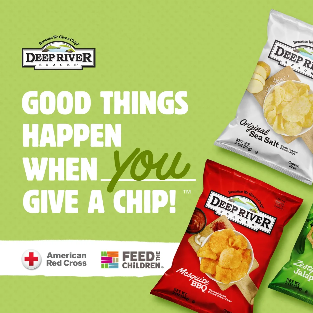 At Deep River Snacks, we believe that snacking can bring people together and make a positiveimpact. That’s why we partner with multiple charitable organizations and give back with everychip we sell. Join us in making a difference, one chip at a time!